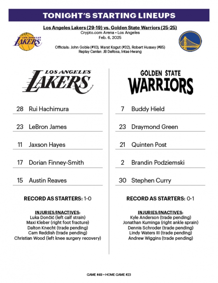2025年10月06日 霍福德首秀3×4!布朗尼5分5失誤 艾頓7+7 勇士輕取湖人