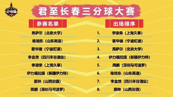 03月01日訊 CBA全明星三分大賽預(yù)賽,共8名球員參賽決出3人晉級(jí)。