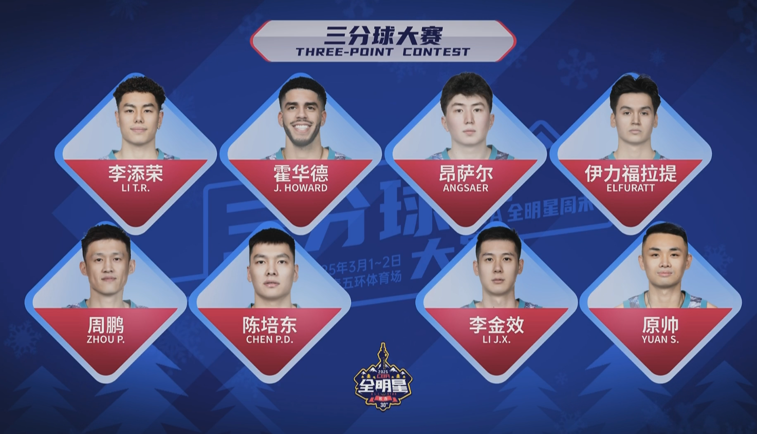 CBA全明星三分大賽:原帥連進(jìn)10球21分 攜手周鵬&陳培東晉級(jí)