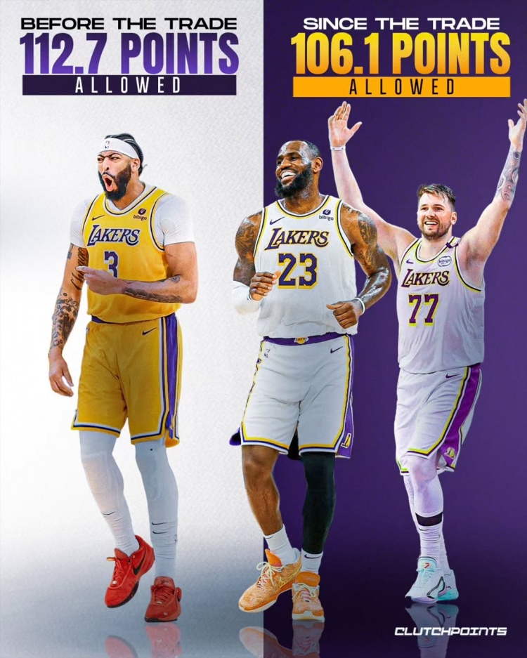 大交易前湖人場(chǎng)均失分112.7 大交易后降到106.1 場(chǎng)均降了6.6分
