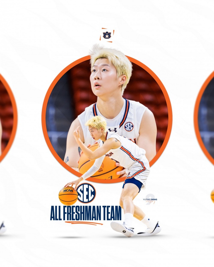 鄧雨婷本賽季投進25記三分球,是奧本大學(xué)隊內(nèi)第一;出戰(zhàn)11場,7次得分上雙;場均12分,在賽區(qū)新人中排名第五。