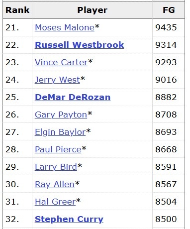 ?庫里生涯投籃命中數(shù)達(dá)到8505 超越哈爾-格里爾升至歷史第31