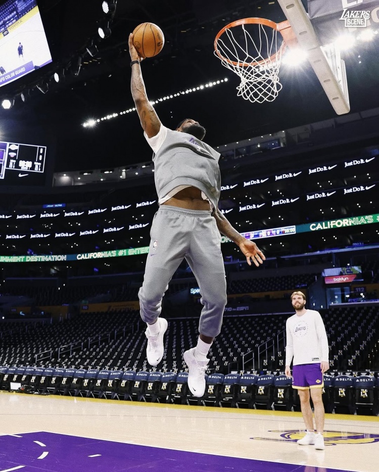 沖刺50000分!湖人官方曬詹姆斯賽前熱身照 飛身扣籃+俏皮做鬼臉