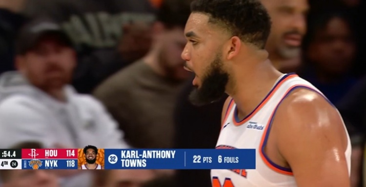 狄龍突破造成唐斯犯規(guī) 唐斯6犯離場(chǎng)&其中第四節(jié)4次犯規(guī)
