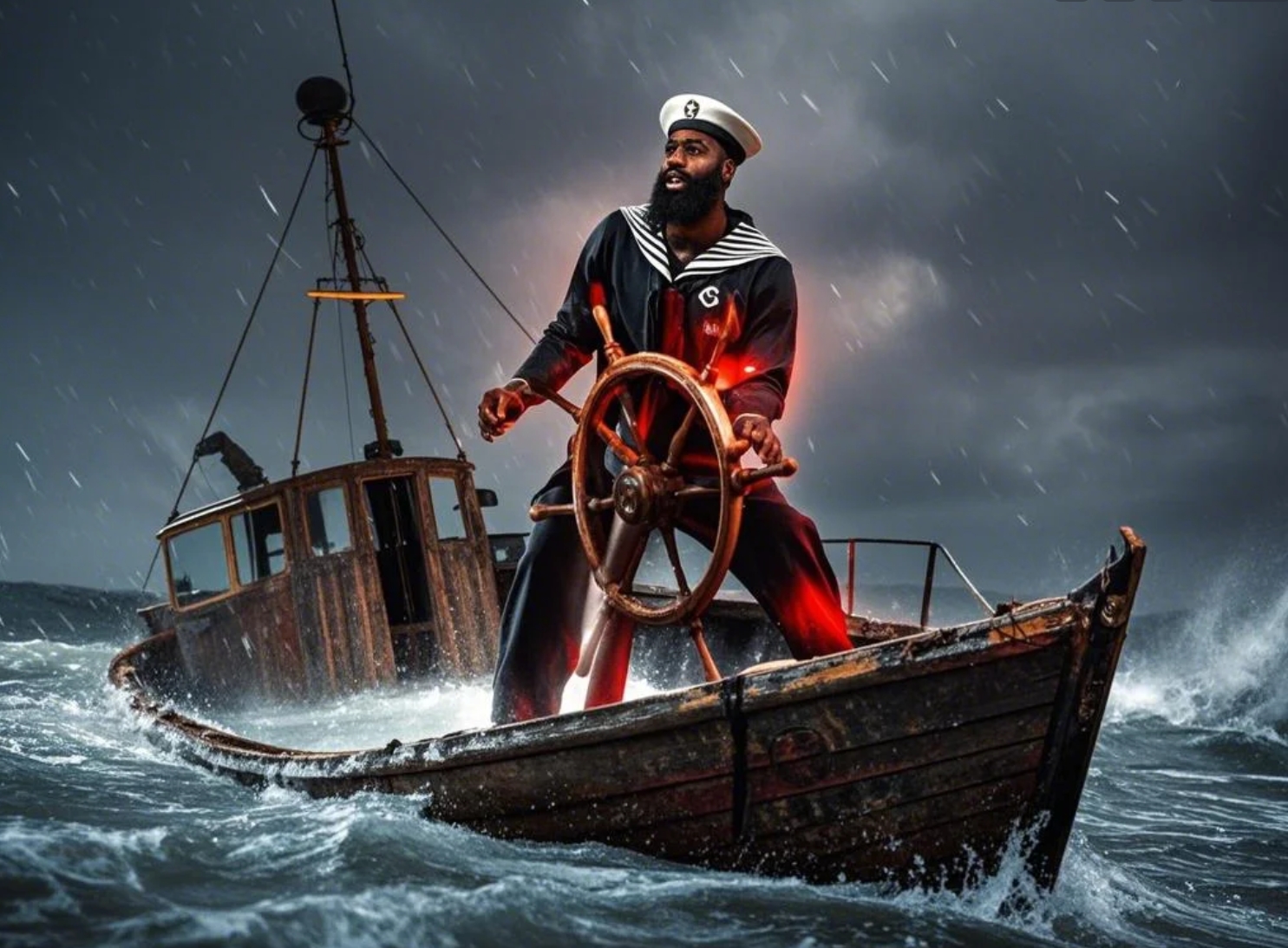 【AI繪圖】大胡子船長(zhǎng)率風(fēng)雨飄搖中即將沉沒的小破船重回正軌~
