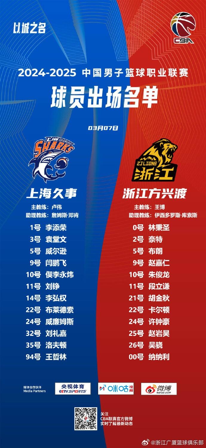 3月7日訊 今晚7點(diǎn)35分,上海男籃將在主場(chǎng)迎戰(zhàn)廣廈男籃。