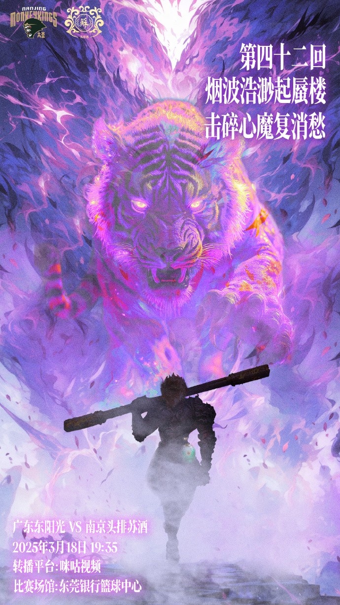 賽前,同曦男籃發(fā)布了本場比賽的預(yù)熱海報,配文:“第42回,煙波浩渺起蜃樓,擊碎心魔復(fù)消愁?!?/p>