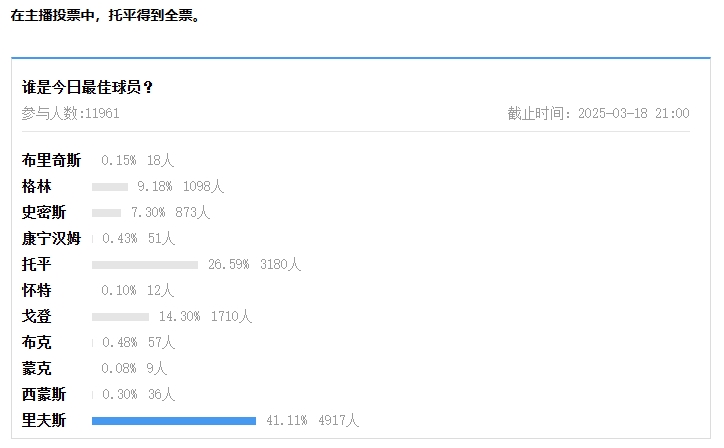 在主播投票中,托平得到全票。