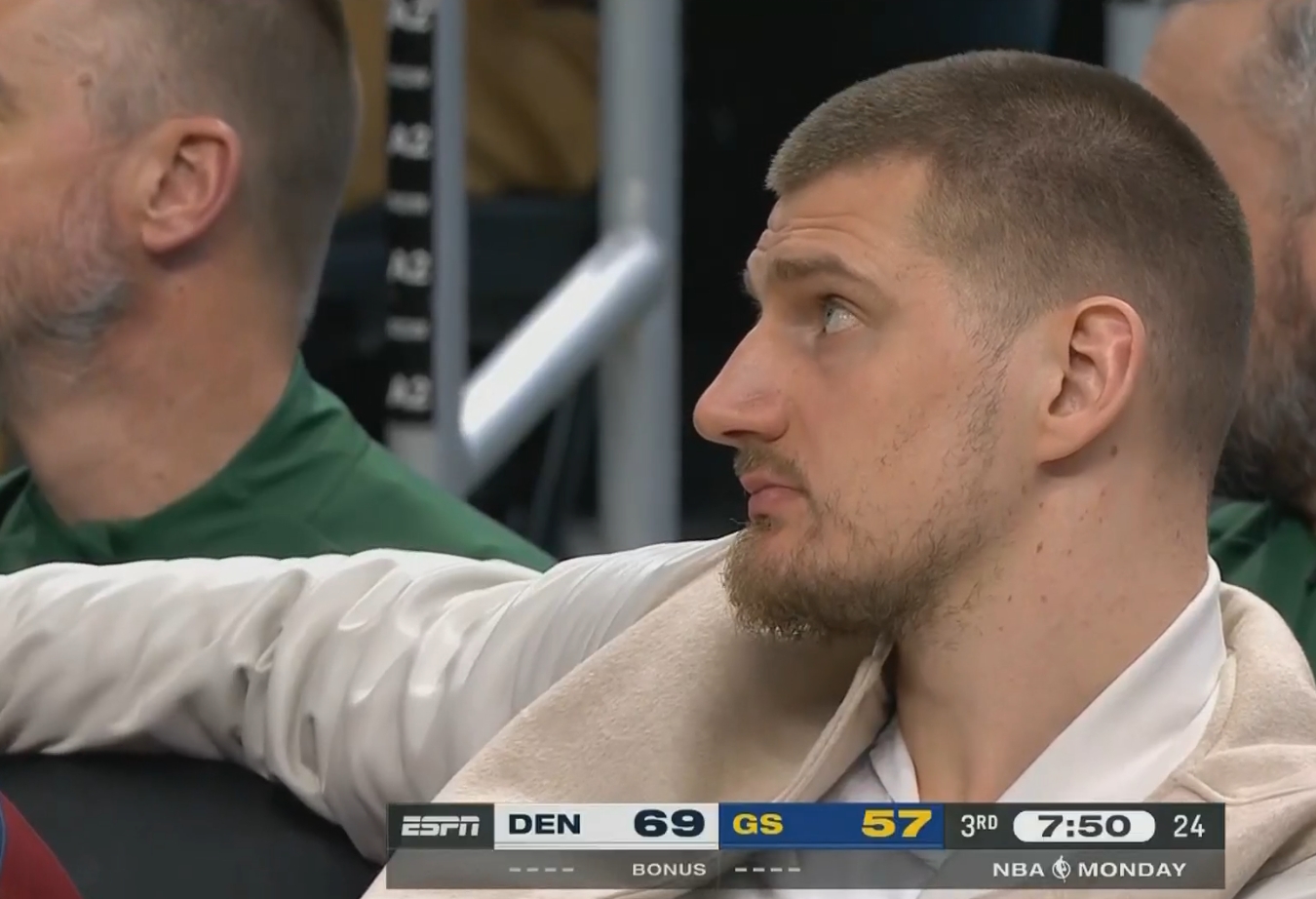 舒服~殘陣掘金領先勇士兩位數(shù) 場下的約基奇一臉淡定~