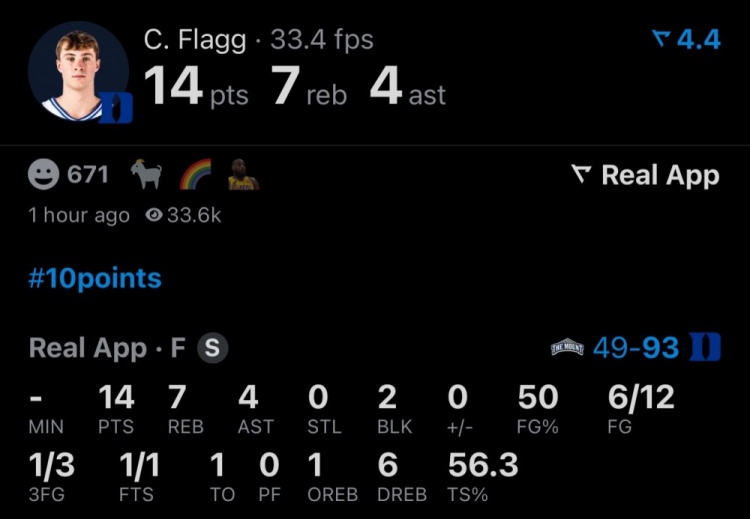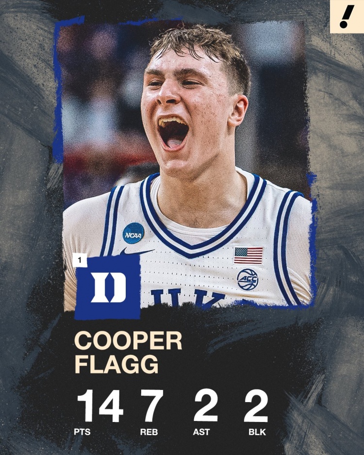 弗拉格瘋?cè)仔?2中6輕取14分7板4助2帽 幫助杜克大勝圣瑪麗山!
