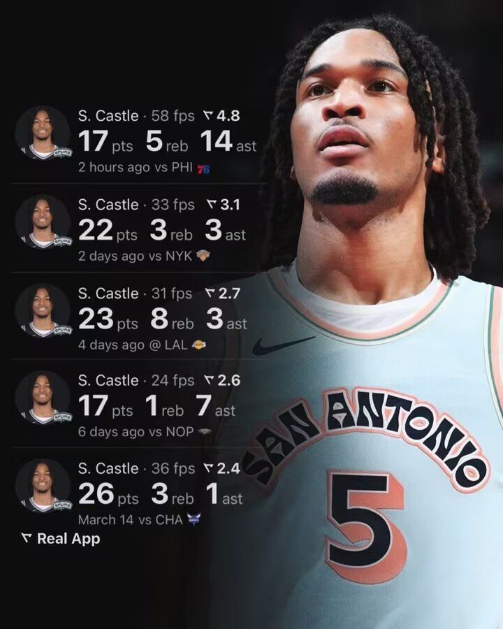 最佳新秀穩(wěn)了?卡斯?fàn)栠^(guò)去5場(chǎng)場(chǎng)均21分4板5.6助 真實(shí)命中率56%