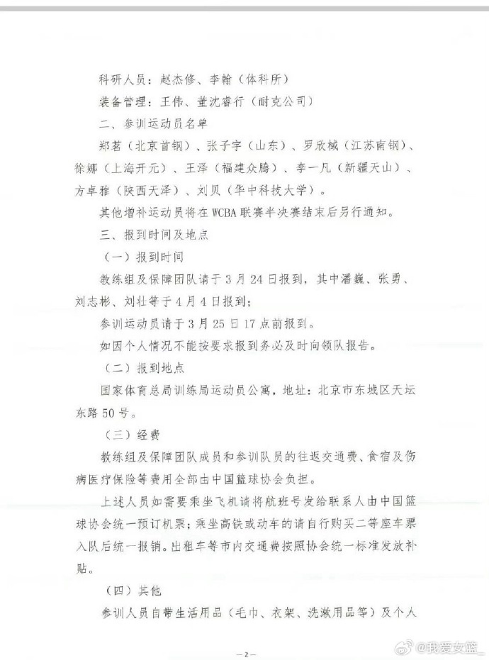中國女籃舉辦短訓(xùn)營 張子宇首次入選中國女籃集訓(xùn)名單
