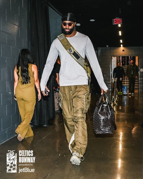 根據(jù)綠軍最新的傷情報告,杰倫-布朗今天可以出戰(zhàn),豪澤缺陣。綠軍官推今天也曬出了杰倫的入場帥照。
