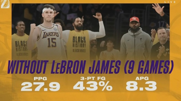 077三分6中4砍19分!里皇次節(jié)猖狂表現(xiàn)率湖人領(lǐng)先13分進入下半場