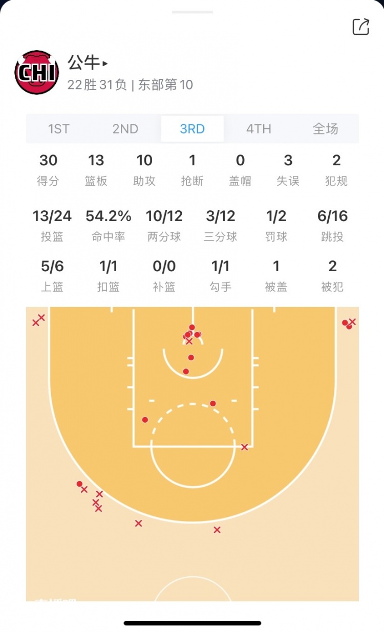 進(jìn)攻端終于有反彈!公牛第三節(jié)30分&布澤利斯10分 上半場(chǎng)共29分