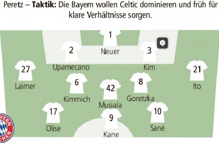 2月18日訊 北京時間周三凌晨的歐冠淘汰賽附加賽次回合,拜仁將在主場迎戰(zhàn)凱爾特人,《慕尼黑日報》對主隊的首發(fā)陣容進(jìn)行了預(yù)測,凱恩、薩內(nèi)、奧利塞組成進(jìn)攻三叉戟。