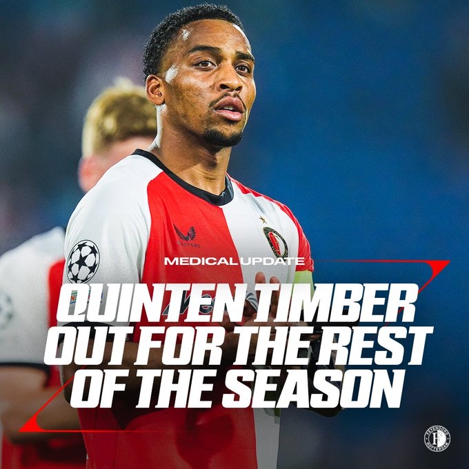 賽季報銷!費耶諾德官方:昆滕-廷伯膝外側(cè)韌帶受傷,已接受手術(shù)
