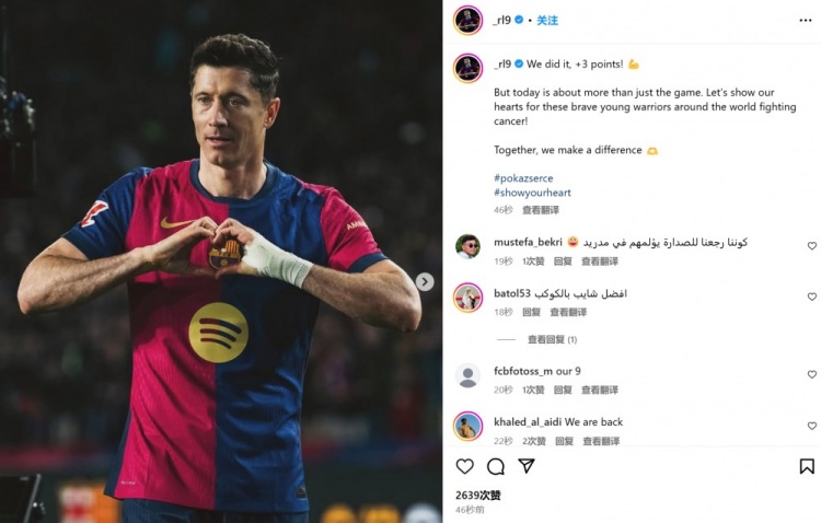 他也在賽后通過社媒曬出自己進球后的比心慶祝照,并配文:“我們做到了,再添3分!”