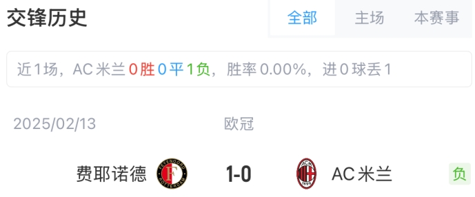 2月19日訊 歐冠淘汰賽附加賽次回合,AC米蘭主場(chǎng)迎戰(zhàn)費(fèi)耶諾德比賽即將打響。賽前首發(fā)出爐。首回合對(duì)陣,費(fèi)耶諾德1-0米蘭。
