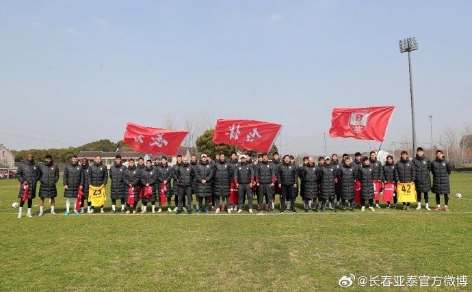 19日10時,上海天氣晴好,亞泰將士抵達(dá)訓(xùn)練場。訓(xùn)練前,全隊舉行了新賽季出征儀式。俱樂部總經(jīng)理曾皎峰帶著省市體育局的囑托,專程從長春趕到上??赐麃喬⑹俊T诔稣鲀x式上,曾皎峰受省市體育局委托,向全體將士授吉林省旗、長春市旗、亞泰隊旗,主帥謝暉、領(lǐng)隊常琳、隊長譚龍分別接過吉林省、長春市、長春亞泰三面大旗。“在剛剛結(jié)束的在哈爾濱第九屆亞洲冬季運動會上,吉林省冰雪健兒敢打敢拼、不畏困難,獲得了9金5銀6銅的優(yōu)異成績,為祖國和家鄉(xiāng)贏得了榮譽,進(jìn)一步激發(fā)了吉林省體育系統(tǒng)奮勇爭先的熱情。作為足球運動員,我希望長春亞泰全體將士們,牢記為長春戰(zhàn)斗的使命,共同努力,換來一年的好成績?!痹ǚ逭f。