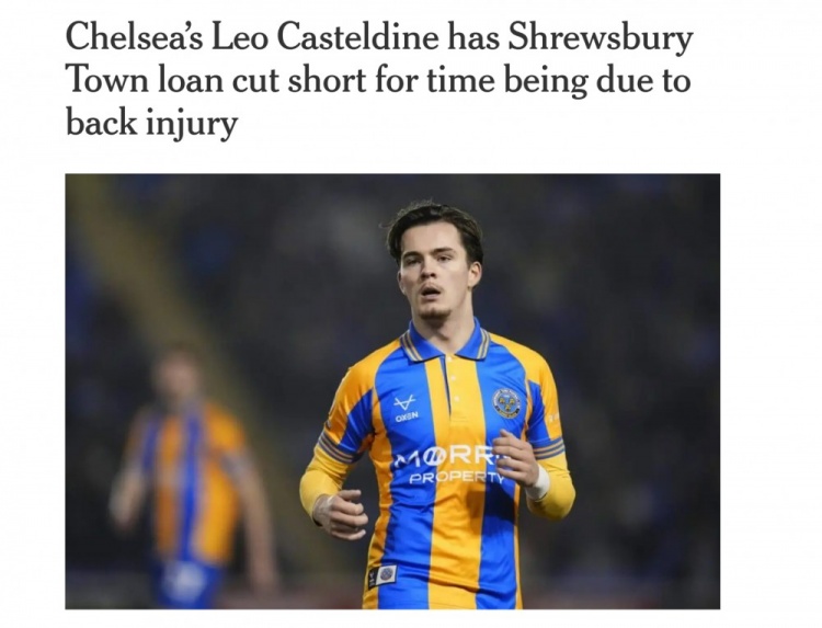 切爾西和什魯斯伯里對卡斯爾丁租借期間取得的進步感到滿意,因此,藍軍并沒有在冬窗提前召回球員或將他租借到其他球隊鍛煉。