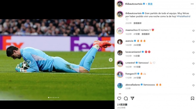 2月20日訊 皇馬在本輪歐冠附加賽次回合3-1輕取曼城,庫爾圖瓦作出3次撲救。他也在賽后通過社媒曬出自己的比賽照,并配文:“全隊踢出了一場精彩的比賽。我們很高興能夠體驗今天這樣的歐冠之夜。” 標簽: 足球 西甲 皇家馬德里 英超 曼城 歐冠