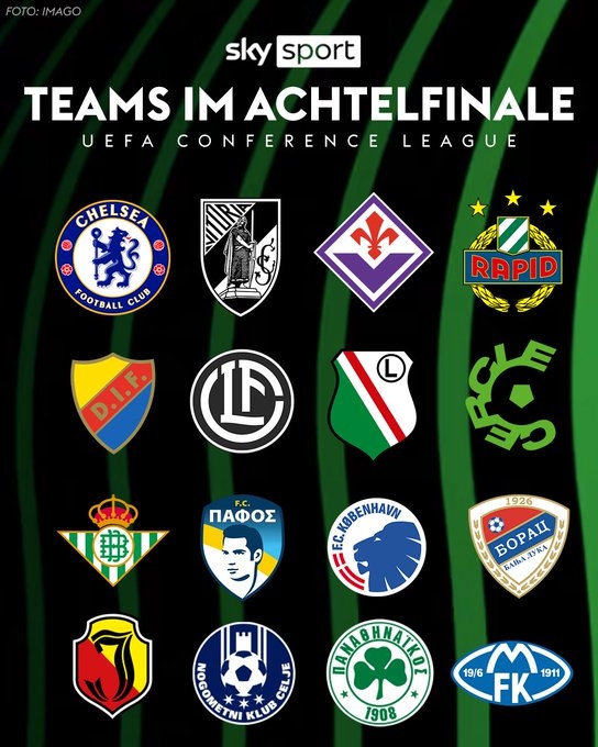 直通8隊(duì):切爾西、吉馬良斯、佛羅倫薩、維也納快速、尤爾加登、盧加諾、華沙萊吉亞、色格拉布魯日