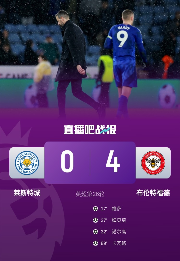 英超第26輪,萊斯特城主場(chǎng)0-4慘敗布倫特福德,遭遇英超3連敗。