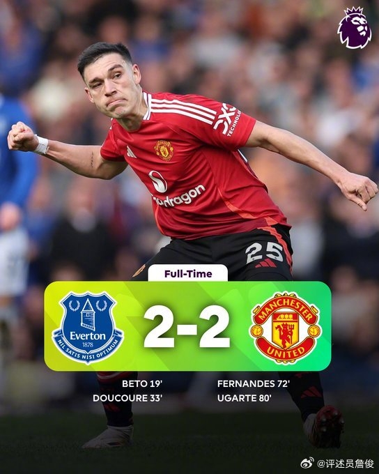 02月22日訊 今日英超第26輪早場(chǎng),曼聯(lián)客場(chǎng)2-2戰(zhàn)平埃弗頓,賽后詹俊在社媒點(diǎn)評(píng)了這場(chǎng)比賽。