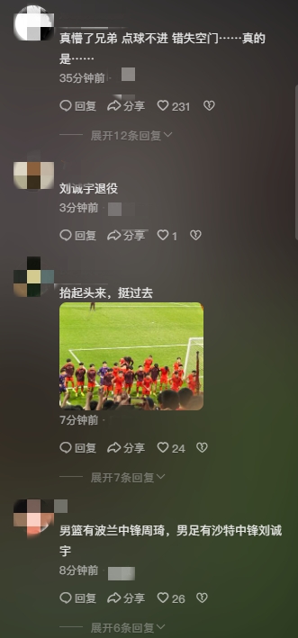 賽后球迷涌入劉誠(chéng)宇社媒評(píng)論區(qū),有球迷仍支持球員,也有球迷對(duì)劉誠(chéng)宇進(jìn)行了攻擊。