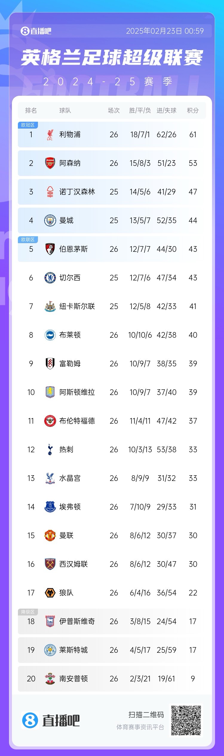 最新積分榜情況如上圖,阿森納3連勝遭終結(jié),15輪不敗也被終結(jié),目前槍手距榜首8分。