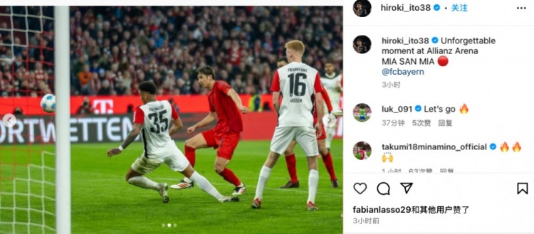 伊藤洋輝曬照紀(jì)念拜仁首球:在安聯(lián)球場的一個(gè)難忘的瞬間