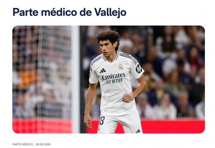 本賽季僅出場10分鐘,皇馬官方:巴列霍左腿股二頭肌拉傷