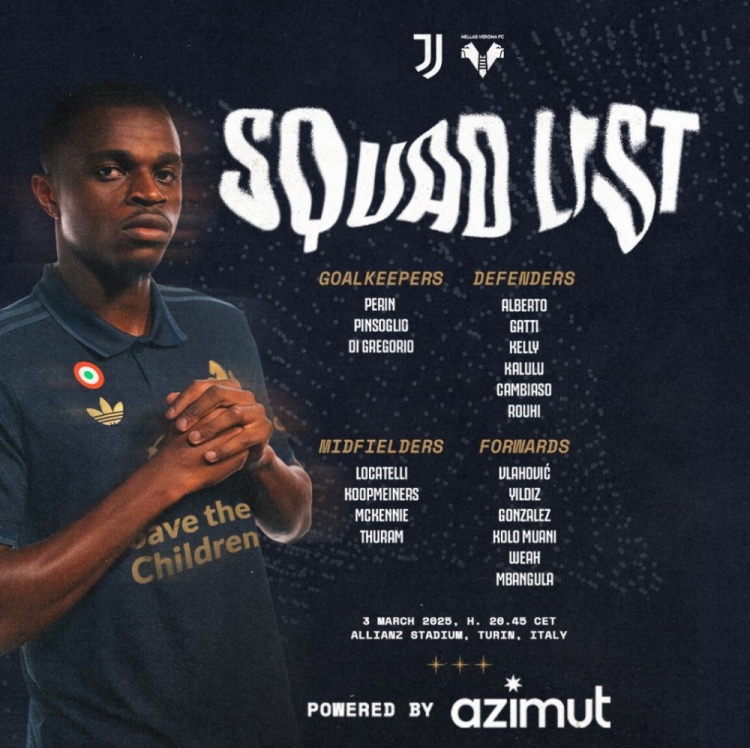 3月3日訊 北京時間34日凌晨3:452024-25賽季意甲聯(lián)賽第27輪,尤文圖斯將坐鎮(zhèn)主場迎戰(zhàn)維羅納。賽前,尤文官方公布了本場比賽球隊大名單,弗拉霍維奇領(lǐng)銜鋒線,中場僅4人。