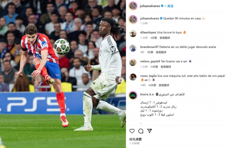 阿爾瓦雷斯也在賽后通過社媒曬出自己的進(jìn)球瞬間,并配文:“回到主場之后還有90分鐘?!?/p>