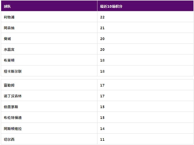 前12名球隊(duì)最近10場聯(lián)賽戰(zhàn)績