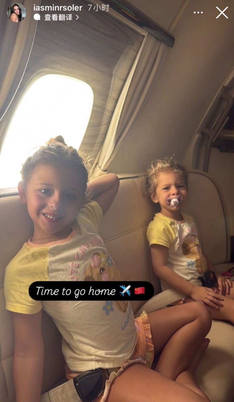 塞爾吉尼奧的妻子在社媒曬出了兩個(gè)孩子在機(jī)艙中的照片,她為此配文“是時(shí)候回家了”,并附上了“飛往中國(guó)”的表情。