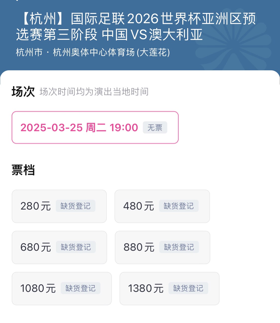 3月25日18強(qiáng)賽國足vs澳大利亞門票早已售罄,官方票務(wù)信息顯示,3月11日0:00起停止退票。這個(gè)時(shí)間點(diǎn)將成為最后的“撿漏”(回流票)的機(jī)會(huì)。