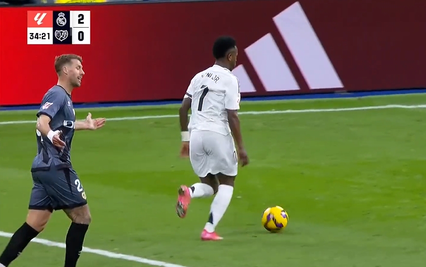 維尼修斯把對手逼成什么樣了?巴列卡諾兩人撞車,一人攤手