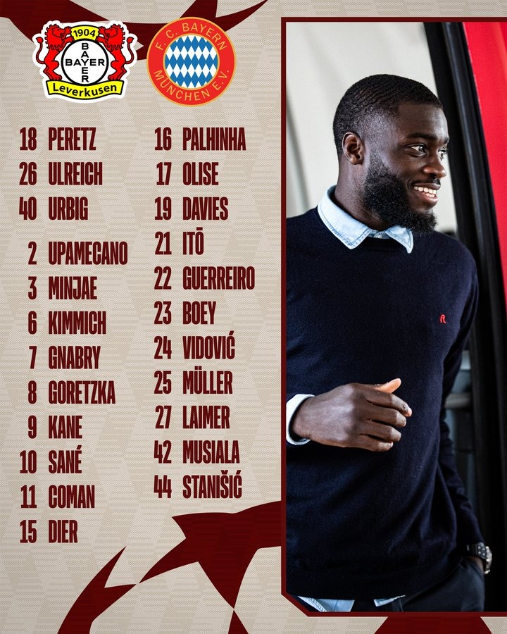 3月11日訊 北京時(shí)間3月12日周三凌晨4點(diǎn),拜仁慕尼黑將在歐冠1/8決賽次回合客場(chǎng)挑戰(zhàn)勒沃庫(kù)森,首回合,拜仁在主場(chǎng)3-0獲勝。今天,拜仁公布了次回合大名單,名單如下: