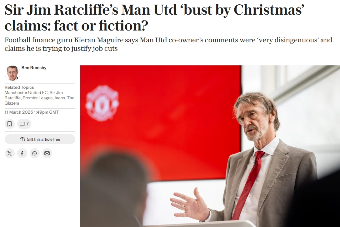 "在引援面確實(shí)存在重大失誤嗎?是的。但這不能全歸咎于格雷澤家族,因?yàn)榕鷾?zhǔn)今夏2.08億英鎊引援的正是拉特克利夫本人,當(dāng)時他既不信任主教練滕哈赫,也不認(rèn)可足球總監(jiān)阿什沃斯的工作。"