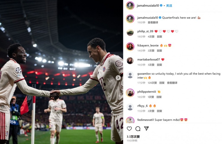 3月12日訊 拜仁在本輪歐冠2-0力克勒沃庫森,穆西亞拉表現(xiàn)搶眼。