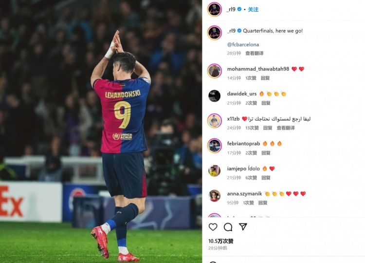 他也在賽后通過社媒曬出自己的比賽照,并配文:“歐冠八強(qiáng)戰(zhàn),我們來了!@巴薩俱樂部”。