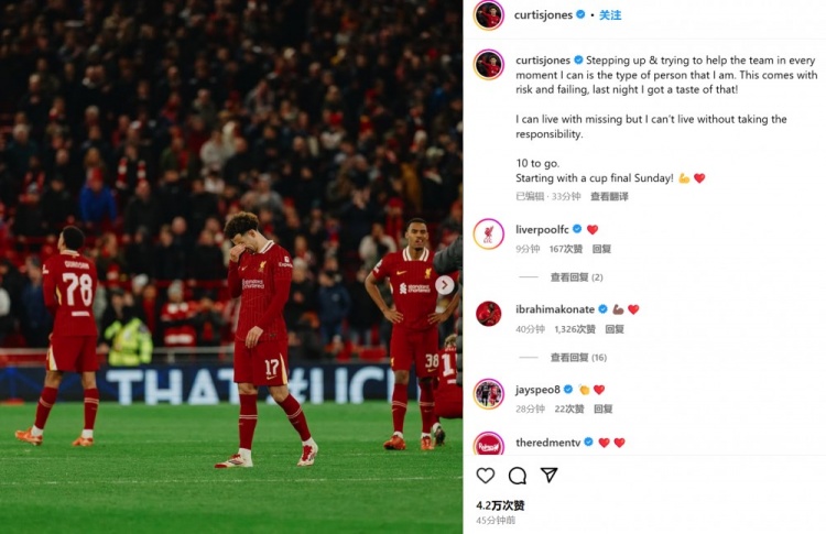 3月12日訊 利物浦在本輪歐冠焦點(diǎn)戰(zhàn)主場被巴黎點(diǎn)球淘汰,柯蒂斯-瓊斯替補(bǔ)登場罰丟點(diǎn)球。
