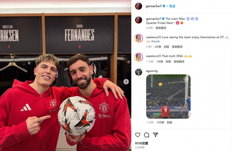 送助攻!加納喬社媒曬與B費合照并手指對方:主角人物!晉級八強