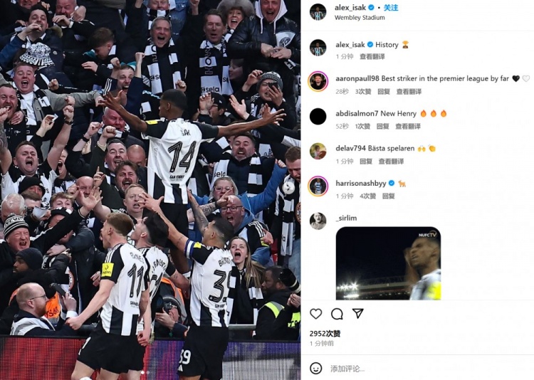 3月17日訊 紐卡在聯(lián)賽杯決賽2-1擊敗利物浦,時(shí)隔70年再次奪冠,進(jìn)球功臣伊薩克也在賽后通過社媒慶祝。