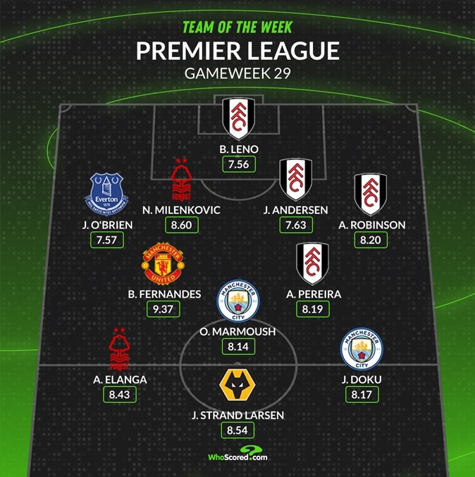 3月17日訊 英超第29輪聯(lián)賽已經(jīng)完賽,whoscored也評出了本輪英超最佳陣容,富勒姆4將入圍。