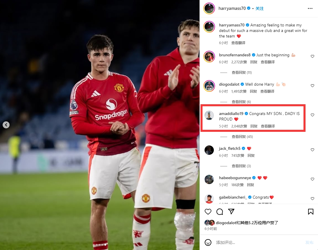 阿瑪斯發(fā)文紀(jì)念:“為一家如此大的俱樂部完成首秀并為球隊取得一場美妙的勝利,感覺真棒??”