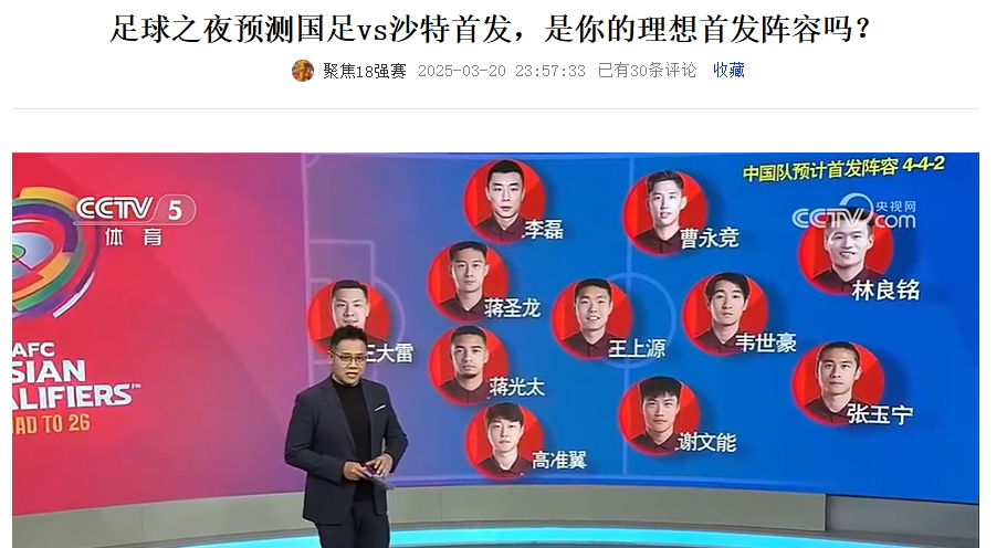 《足球之夜》的厚重!足夜預(yù)測(cè)國(guó)足首發(fā)全對(duì),甚至場(chǎng)上位置都全中