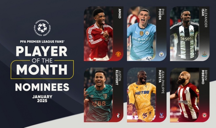 2月5日訊 PFA(英格蘭職業(yè)球員工會(huì))公布了英超1月最佳球員的候選名單,福登、阿瑪?shù)隆⒁了_克等人入選。